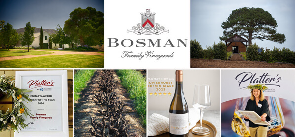 Bosman Family Vineyards freut sich, den Platter Guide Editor's Choice: Winery of the Year Award für 2024 erhalten zu haben. Diese Auszeichnung würdigt ein Weinbau-Team, das aufgrund seiner Leistung in der aktuellen Ausgabe sowie seiner Erfolgsbilanz hervorragende Botschafter für südafrikanischen Wein sind.