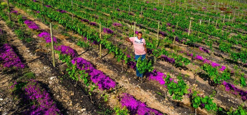 „Die Vygies und andere einheimische Pflanzen spielen in unserem Weinbau zwei Rollen“, sagt Johann. "Erstens extrahieren diese Pflanzen Kohlendioxid aus der Luft und geben über ihre Wurzeln das Kohlendioxid in den Boden ab, was sich positiv auf die Bodengesundheit auswirkt."