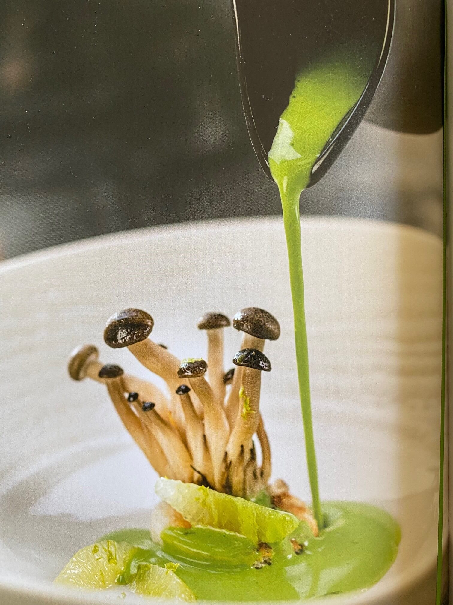 Pilzsträußchen in die Mitte eines tiefen Tellers stellen und mit Suppe angießen. Mit dem Abrieb sowie Filets der Limette bestreuen und servieren.