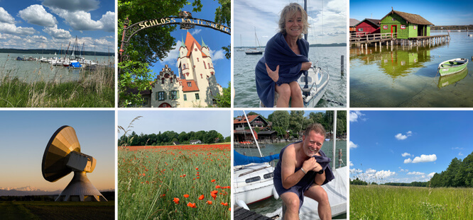 Obige kleine Collage kann vielleicht eine erste kleine Idee vom Leben am Ammersee vermitteln, das für uns zwischen Juni und Oktober mit einem täglichen morgendlichen Bad am Gemeindesteg beginnt.
