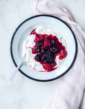 Vanillejoghurt mit Honig und geschmorten Beeren