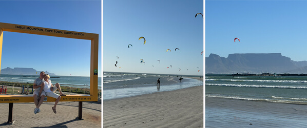 Für uns ging es zurück nach Kapstadt, wo wir den Nachmittag mit einem Snack an der Big Bay ausklingen ließen - ein gastronomischer Hotspot für Kiter und Surfer mit fantastischem Blick auf den Tafelberg.