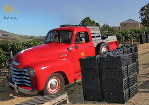 Der Rote Pick Up ‘53 steht bereit, um den Kellern die entsprechenden Trauben zu liefern.