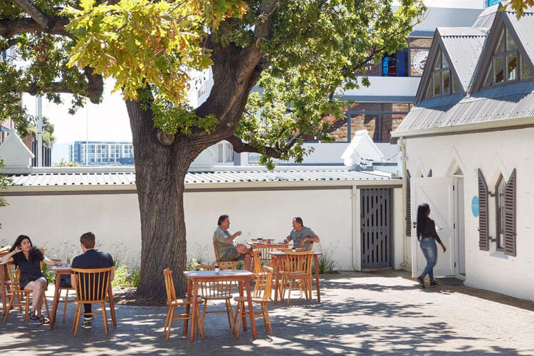 Entfliehen Sie dem Trubel auf der Somerset Road und begeben Sie sich in den ruhigen, von Säulen gesäumten Innenhof eines wunderschönen Steingebäudes aus dem 19. Jahrhundert. Das ehemalige Kloster ist das neue Zuhause der international renommierten Goodman Gallery und jetzt auch ein einfaches kleines italienisches Bistro. Nehmen Sie drinnen (in dem kühlen, weiß gestrichenen, minimalistischen Raum mit Holzboden) oder draußen im schattigen Innenhof Platz.