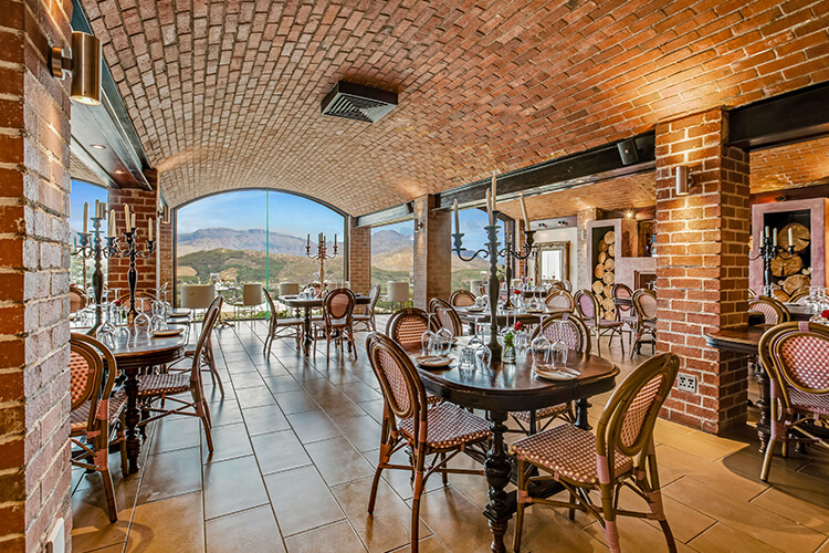 Wer sagt, dass man Grand nur am Strand bekommt? Die Grand Africa Collection, berühmt für ihre Meereskratzer-Restaurants in Granger Bay und Plett, hat ein Restaurant an den Hängen der Franschhoek Mountains eröffnet! Die Gäste, die Grand Country kennen lernen, können die gehobene, verspielte Atmosphäre, eine köstliche Auswahl an Speisen und Weinen und einen Blick über die Weinberge erwarten, der dem Vergnügen gleicht, barfuß am Strand zu spazieren …