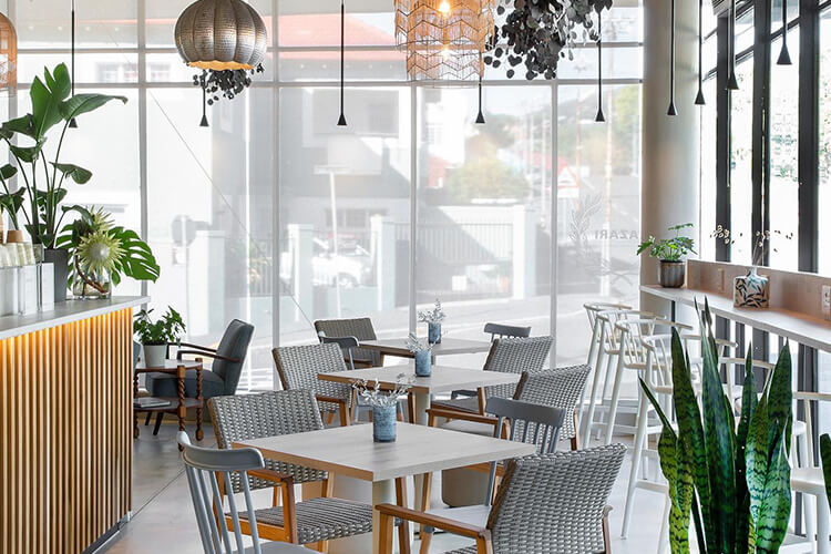 Lazari, einer der beliebtesten Coffeeshops von Vredehoek, wurde dank seiner neuen Besitzer einem sanften Update unterzogen. Das griechisch inspirierte Café hat sein Erbe bewahrt, seine lange 18-jährige Geschichte gewürdigt und seinen Hut vor dem früheren Besitzer Chris Lazari gezogen, der in seine Heimat zurückgekehrt ist. Treue Kunden, Nachbarn und ihre Hunde freuen sich über die Rückkehr der geliebten Mitarbeiter Molly und ihres Teams. Das aktualisierte Interieur – gedeckte Rosa- und Grautöne, warme Holzvertäfelung, puderblaue Stühle und ein hübsches Vintage-Sofa, das Sie in seine Ecke lockt – schaffen eine warme und einladende Atmosphäre und spiegeln das griechische Erbe mit modernem Flair wider.