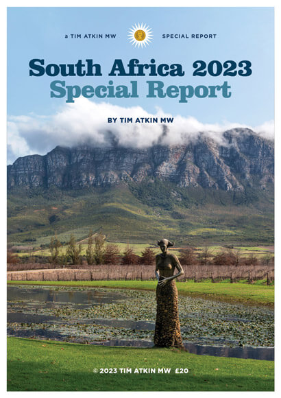 In seiner Rubrik „Südafrika auf einem Blick“ beginnt Atkin seinen Bericht zunächst mit interessanten Fakten über Südafrikas globaler Position als weltweit achtgrößter Weinproduzent und fünftgrößter Produzent der neuen Welt hinter den USA, Australien, Chile und Argentinien und thematisiert zeitgleich dennoch Südafrikas kontinuierliche Abnahme der Rebflächen, was auf die vierjährige Dürre von 2016 bis 2019, anschließende Hitzewellen im Jahr 2022, geringe Rentabilität im Weinbau und Bauern, die auf andere Kulturen umsteigen, zurückzuführen ist. Herausforderungen, die von der COVID-19-Pandemie natürlich noch verschärft wurden. Südafrika produziert in der Regel rund 4 % des weltweiten Weins, wobei die Ernte aufgrund von Wetterbedingungen variieren kann. Die Weinregionen des Landes sind im Rahmen eines "Wine of Origin"-Schemas organisiert, wobei Paarl, Robertson und Breedekloof die größten Traubenanbaugebiete sind. Die Produktion wird von kleinen Weinfarmen und Weingütern dominiert, wobei die Mehrheit der Anbauer Trauben an verschiedene Produzenten verkauft, darunter an große Genossenschaften.