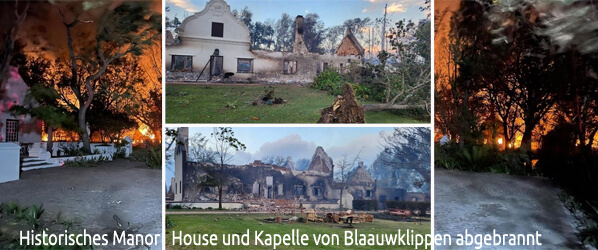 Blaauwklippen verliert Manor House und Kapelle durch Brand